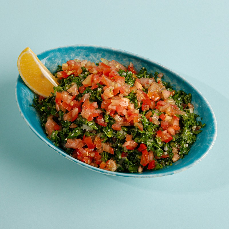 ملكة المقبلات عبارة عن بقدونس طازج وطماطم وبرغل مع عصير الليمون الطازج واجود انواع زيت الزيتون