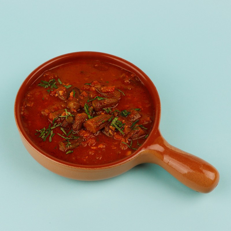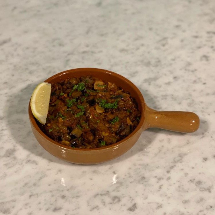 (475 سعرة حرارية)حمسة الباذنجان مع الطماط و البقدونس