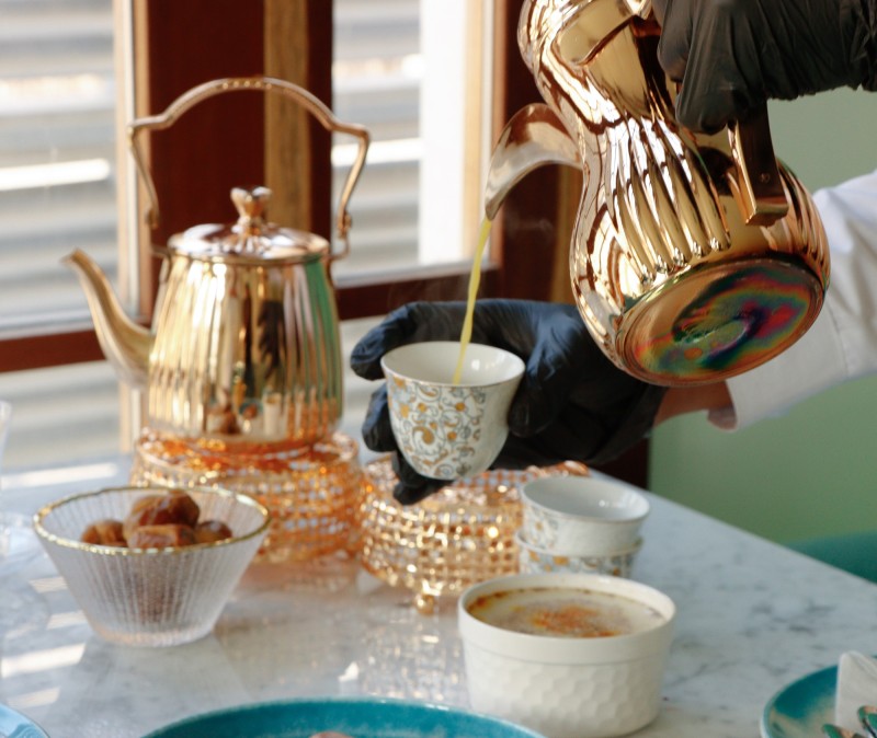 (240 سعرة حرارية)القهوة العربية المبهره بالهيل و الزعفران وتقدم مع التمر السكري