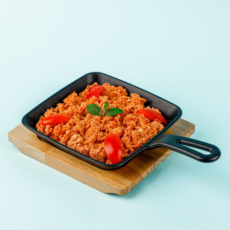 قطع من اللحم الطازج يتم تقديمها مع الطماطم و البهارات الخاصة